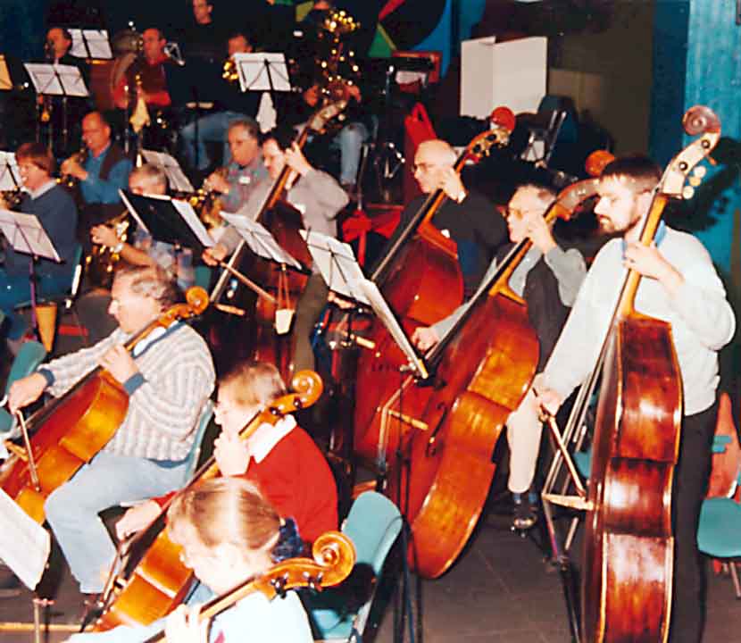 Auch Schleswig-Holsteiner sind vertreten. So sitzen am 1. Pult Helga Wrage aus Schleswig, der "Kopf" des privaten Organisationsteam, und die Konzertmeisterin, Christel Köpke aus Lübeck.Sogar der Bassist des Kammerorchesters Scheersberg, Martin Schneider, wirkt mit.