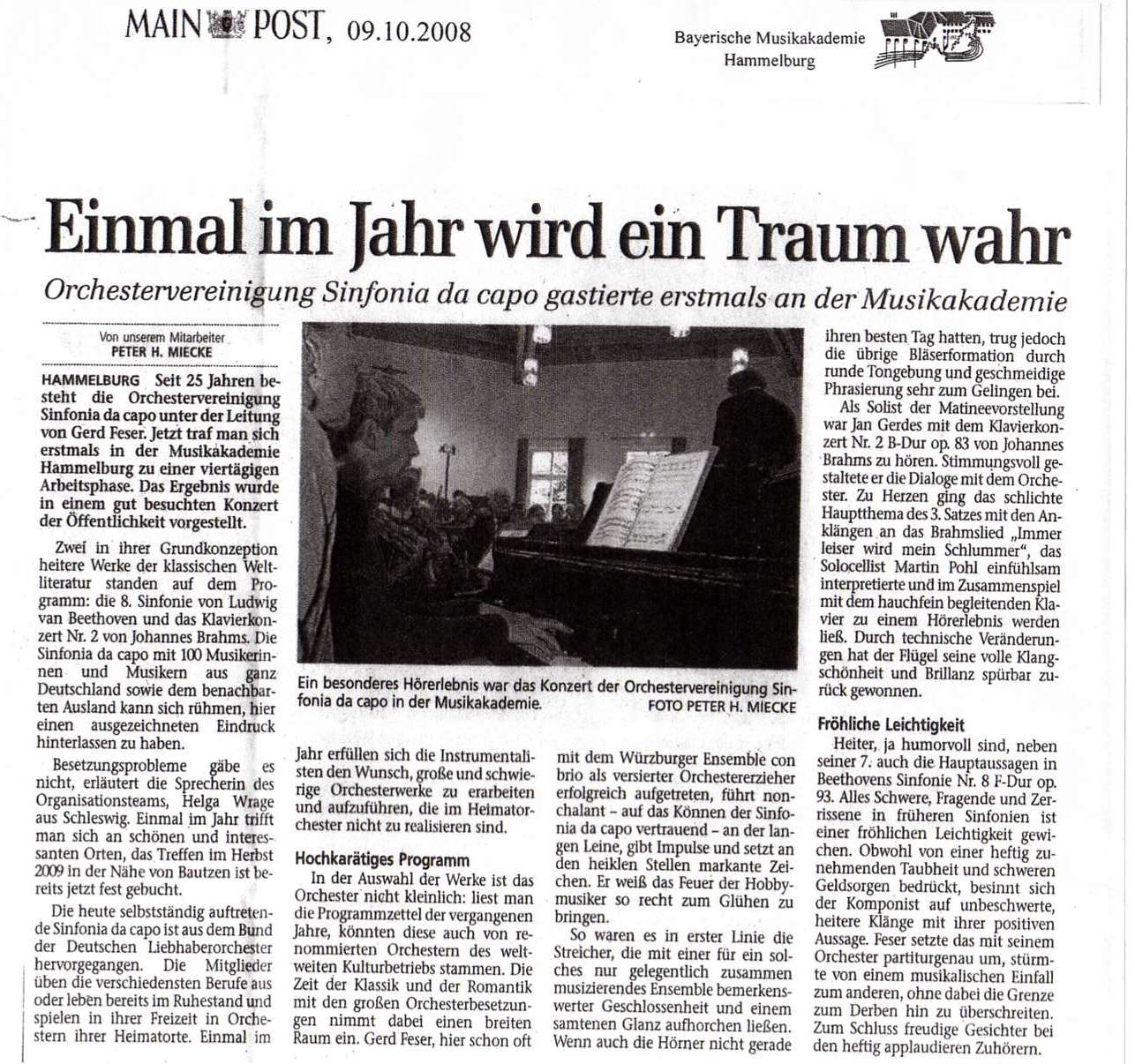 Hammelburg 2008: L.van Beethoven, Sinfonie Nr.8; J.Brahms, Klavierkonzert Nr. 2 B-Dur (Solist: Jan Gerdes, Düsseldorf)