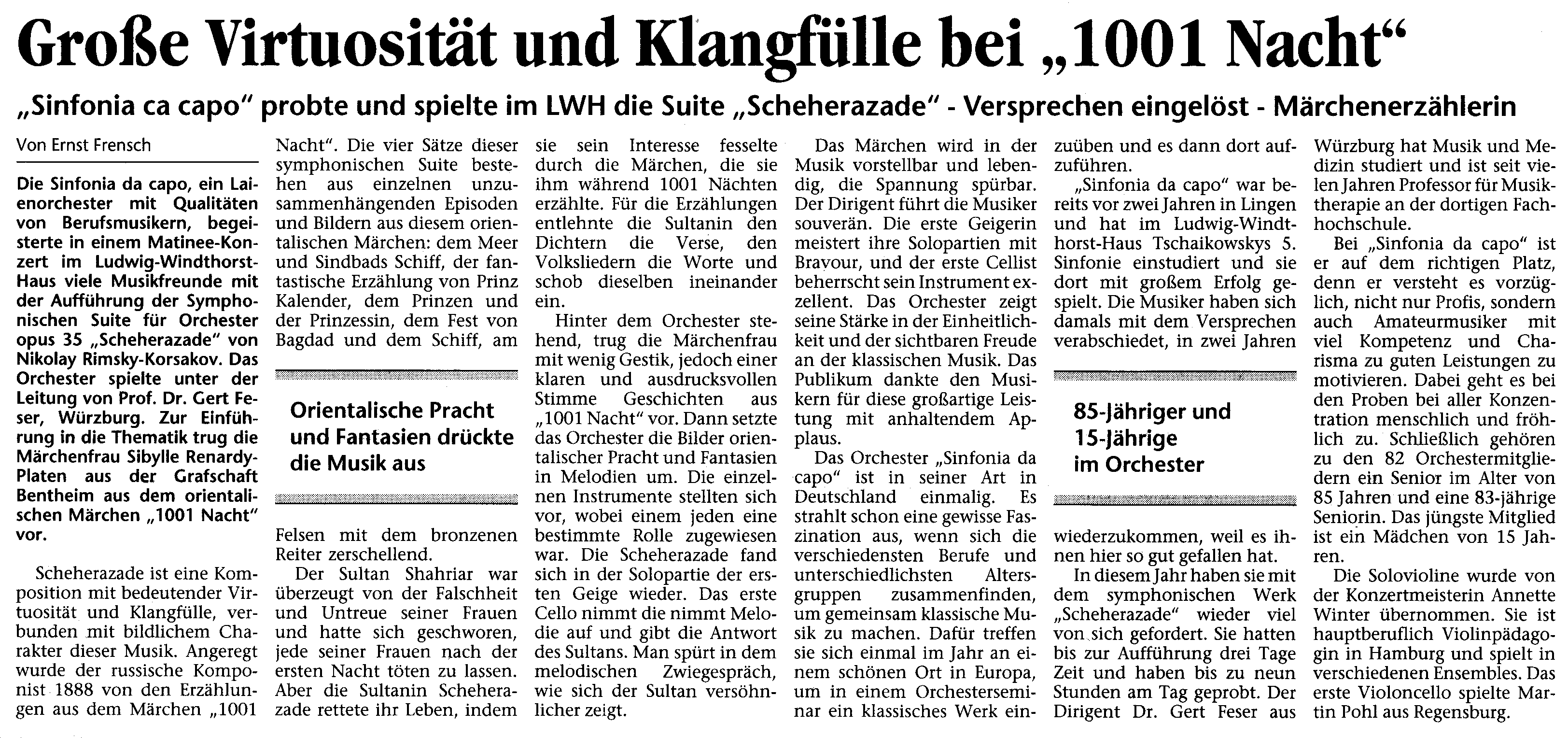 "Das Märchen wird in der Musik vorstellbar und lebendig, die Spannung spürbar... Das Orchester zeigt seine Stärke in der Einheitlichkeit und der sichtbaren Freude an der klassischen Musik."
