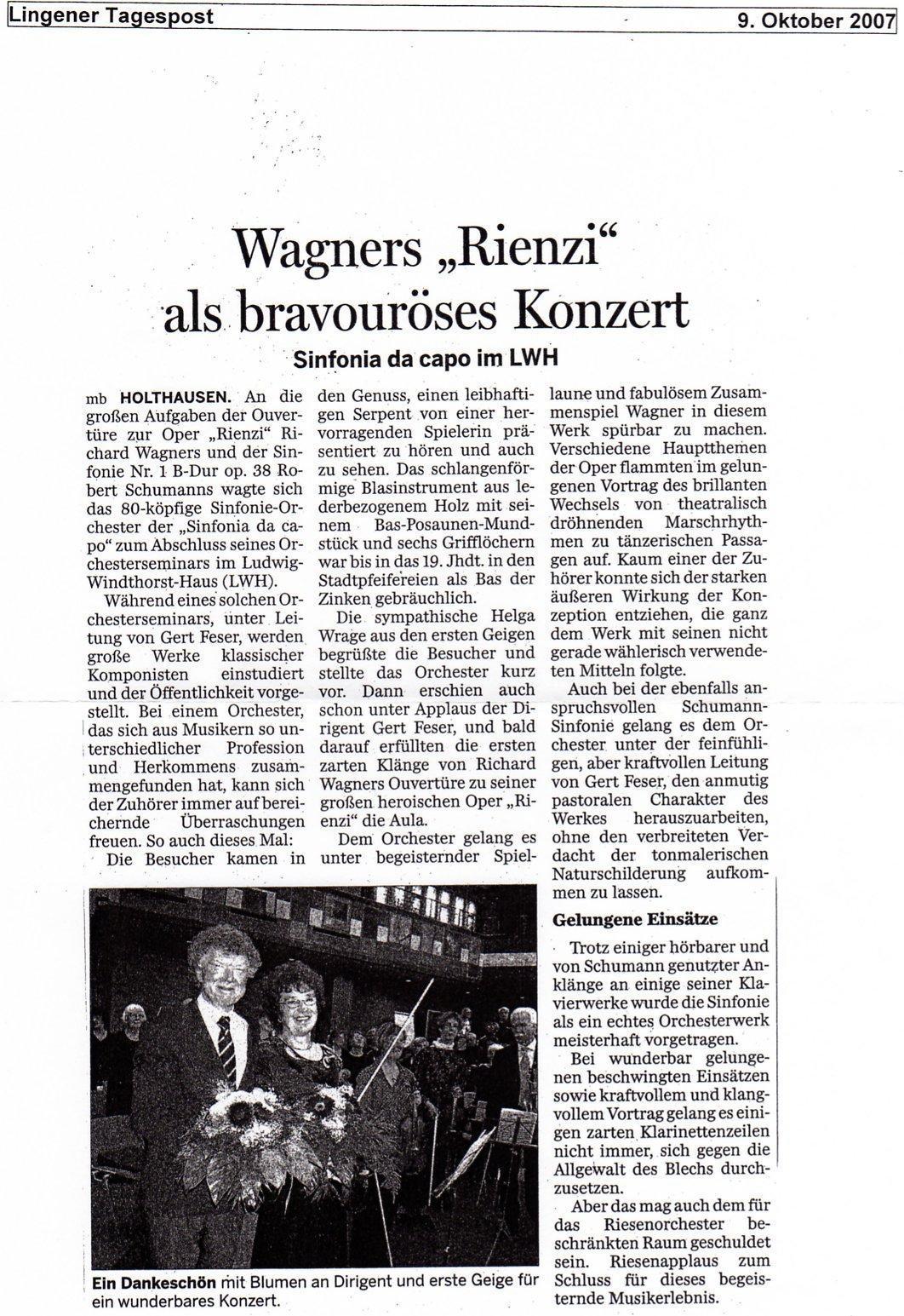 Lingen 2007: R.Wagner, Rienzi-Ouvertüre; R.Schumann, 1. Sinfonie "Frühlingssinfonie"